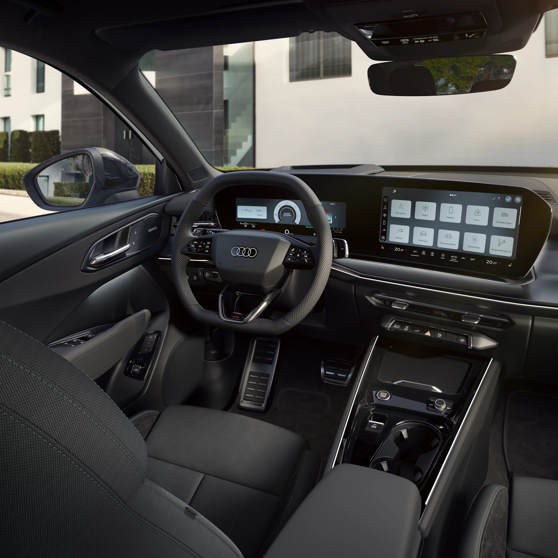 I Audi Q3 Sportbvack kan du vælge mellem en lang række af interiørpakker som fx design selection-interiør (ekstraudstyr). Den omfatter sportssæder foran, ambientebelysningspakke plus og Dimension-dekorindlæg i mørkt aluminium